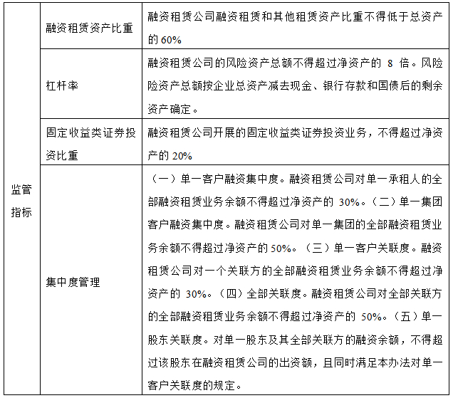 表1-5 《融资租赁公司监督管理暂行办法》主要监管规定及指标