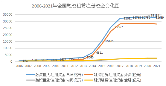 图1-2 2006-2021年全国融资租赁企业数量图(3)注册资金