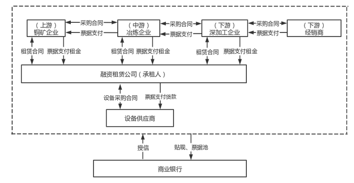 融资租赁集“融资”和“融物”为一体,能够为铜产业供应链提供相关服务。一方面,铜产业链上游的开采、中游的冶炼和下游的深加工环节对于重型机器设备是刚性需要,另一方面,中下游相关企业包括融资租赁自身都有融通资金的需求。此时,票据为融资租赁赋能,票据+融资租赁结合运用的优势彰显。