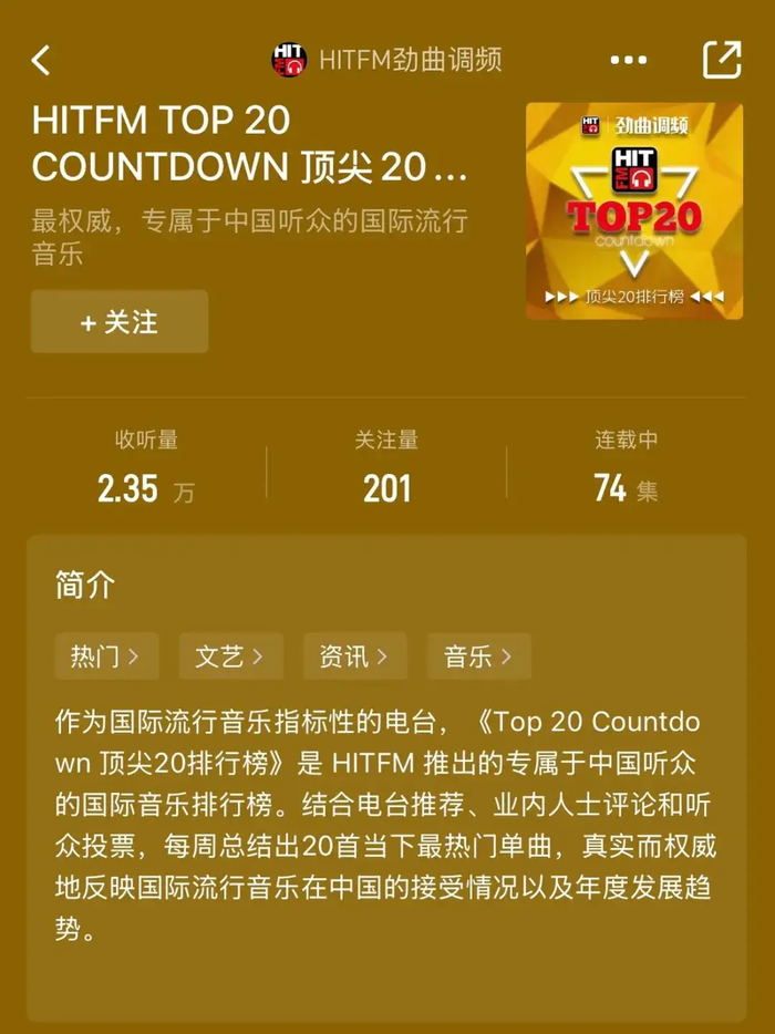 而每周六下午雷打不动的《Top 20 Countdown》,更在当时的欧美音乐受众中,拥有着近乎“圣经”般的权威性——一首新歌在榜单上的排位,直接决定了它在中国市场的传唱度。对于当时初入社会的80后和还在上学的90后而言,Hit FM更是英语听力的免费教材和欧美流行文化的启蒙老师。