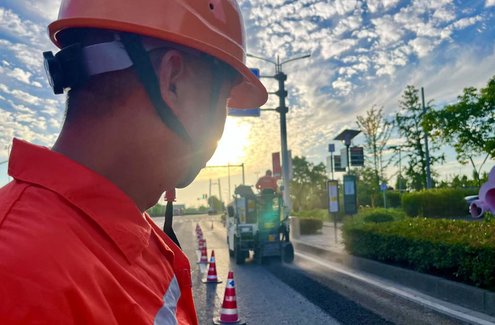 酷暑盛夏,清晨本是对道路养护工相对友好的作业窗口。然而,此时逼近30度的气温,还是让“全副武装”的工友们不停冒汗。对他们而言,高温下的施工时段,只有“热”和“更热”的区别。