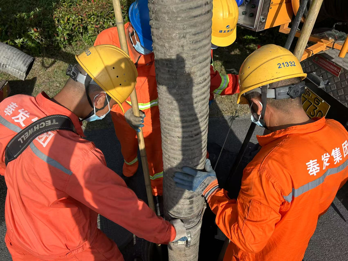另一个班组在清理雨水管道。劳动报记者 胡玉荣 摄影工人们的衣衫早已湿透。随着被抽出的污水逐渐由浊转清,他们悬着的心也稍稍放下——这意味着即将到来的台风天,路面积水的风险又少了几分。