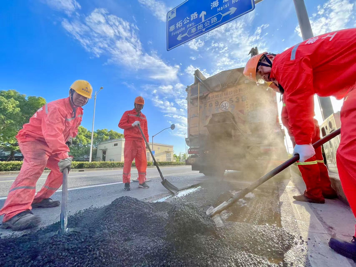 就在两三个小时前,班组的20多位成员各自从家中出发,集结于大叶公路附近的道班。准备好施工机具和设备,又马不停蹄赶到了十几公里外的海泉路。