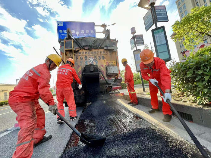 365天守候是道路养护工的日常。劳动报记者 贡俊祺 摄影“我们平时的工作以道路的小修小补为主。作业面小,大型机械施展不开、成本也高。要高质量完成任务,靠的就是每个人认真负责的态度和每道工序的规范操作。”秦加强告诉记者,公司已连续22年荣获上海市重点工程实事立功竞赛“先进集体”称号,养护范围也从奉贤扩展到了世博地区、临港新片区。“我们可不能给单位坍台啊!”