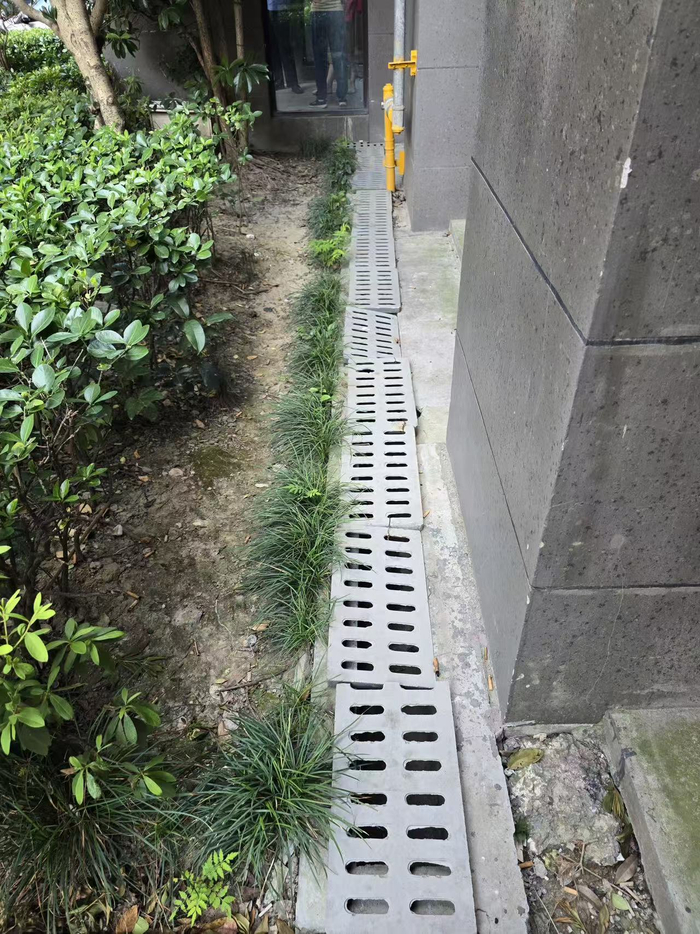 魏先生家所在楼宇的排水渠上方都覆盖了盖板。于玘珺 摄影记者在现场也看到,环绕魏先生家所在楼宇的排水渠上方,全都覆盖了一层水泥盖板,小区院墙污水井上方的洞也被挡板堵住。