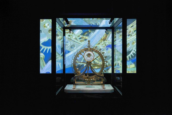 作为一场以“时间”为母题的文化大展,“生生之美:超越时计的艺术”展览叙事从时间概念的形成展开。在古代文明中,时间首先与天象、宇宙秩序相连,来自太阳、月亮与星辰的周期构成人类最早的时间系统。随着机械塔钟在十四世纪的诞生,时间从神圣的、自然的天体轨迹,进入社会制度与城市秩序的框架之中,成为现代社会的基础结构。展览以一系列早期机械塔钟模型、宗教钟表与文艺复兴时期的天文装置,呈现时间如何从天空坠入街道,成为“公共时间”的起点。