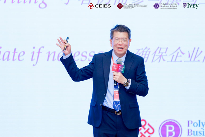 随后,郑大昭也向与会嘉宾致欢迎辞。他表示,在复杂动态的决策环境中,案例能提供沉浸式的管理决策场景。案例讨论不仅能带来多元视角,帮助权衡决策的正反两面,更能提升学员整合定性定量证据的分析能力与沟通技巧,以更好地应对快速变化且不可预测的外部商业环境。随后,郑大昭介绍了香港理工大学工商管理学院在案例教学法上的持续投入,并致力于为全球管理教育贡献独特洞察。