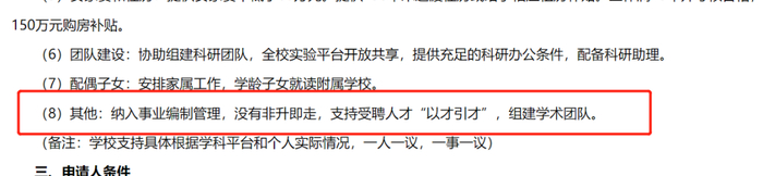 ▲ 来源:江苏师范大学人事处2022年5月,宿迁学院也在其2022年的人才引进公告中,明确表示不实行非升即走,更是提出了“百万安家费 无非升即走;入职即入编 解决家属工作”。