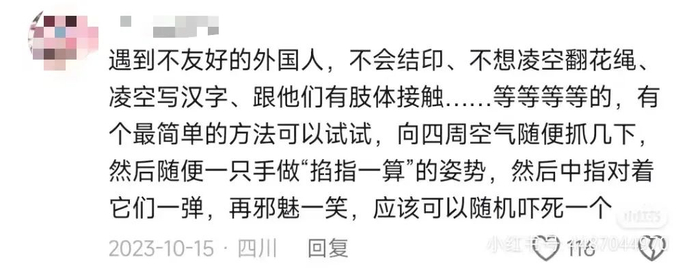 (图源:小红书 @张塔丽,版权属于原作者)更牛的是,在遭到不怀好意的歧视时,也可以动用“神秘的东方力量”有效回击👇