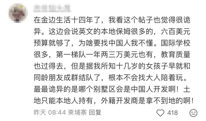 不仅如此,在柬埔寨生活的华人表示当地情况和她妈说的根本不一样,没有那个国际学校,而且正经的有钱华人谁住金边这么危险的地方啊?