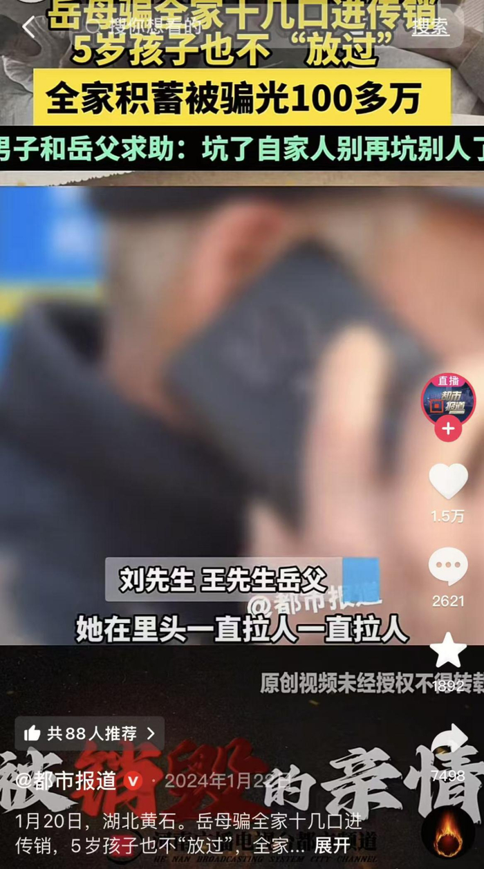 湖北王先生的岳母深陷传销,这么多年用各种手段把家人骗过去。