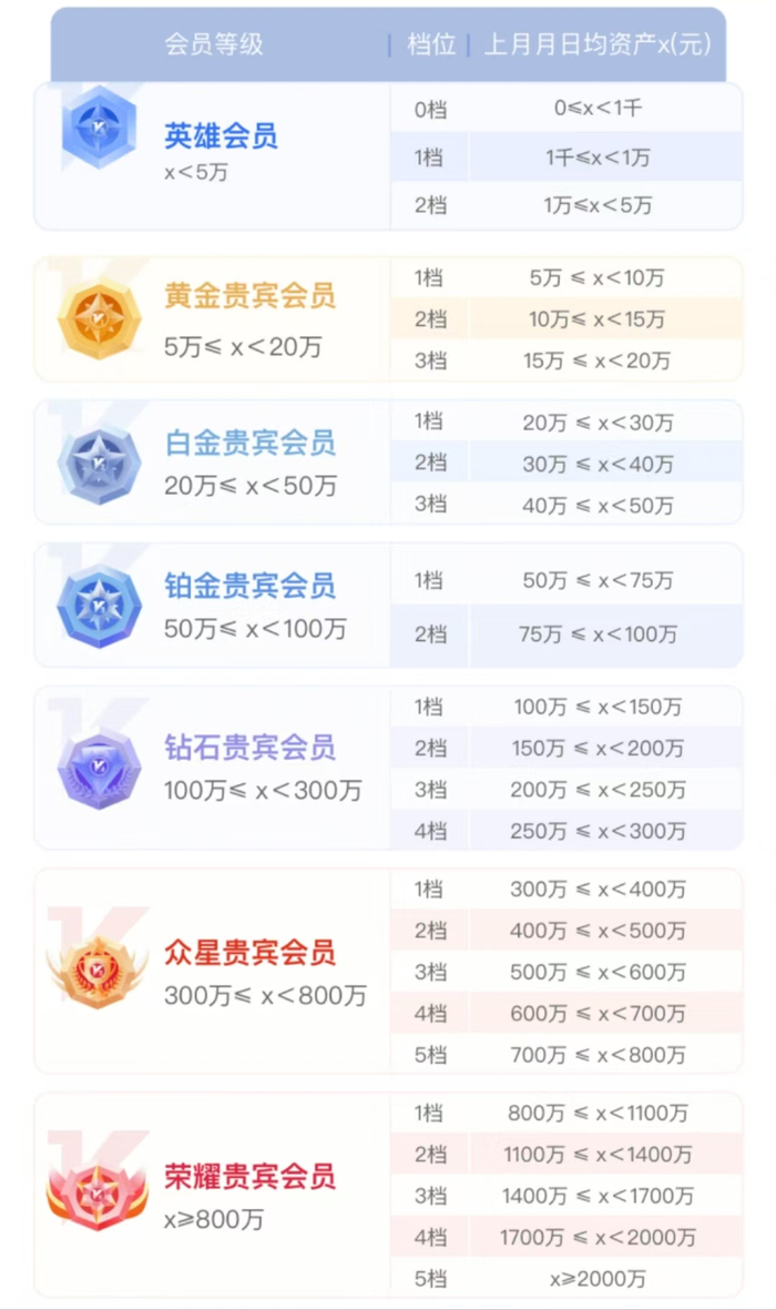 现在奖励是按投资后次月评定的等级来给奖励,也就是只看首月的日均资产。各等级对应的要求可以看这里。