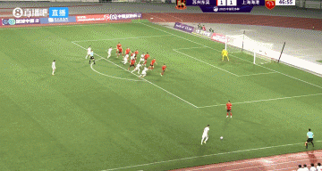 第48分钟,海港右路任意球机会,开到禁区内,第一下射门被挡出!第二点茹萨不停球直接左脚爆抽破门!海港2-1反超东吴↓