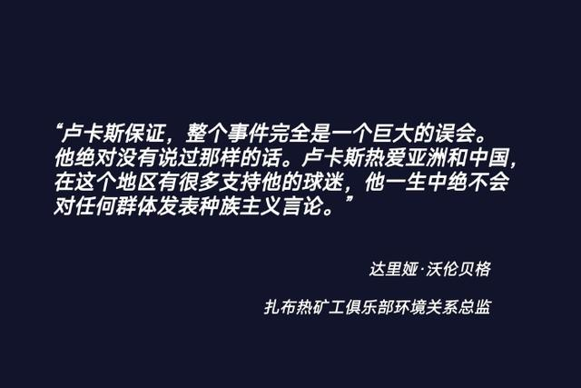 扎布热矿工官方表示:“卢卡斯(波多尔斯基)保证,整个事件完全是一个巨大的误会。他绝对没有说过那样的话。卢卡斯热爱亚洲和中国,在这个地区有很多支持他的球迷,他一生中绝不会对任何群体发表种族主义言论。”