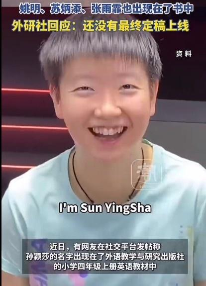 直播吧6月9日讯 据中国蓝新闻报道,对于孙颖莎的名字出现在英语教材中,外研社给予了回应。