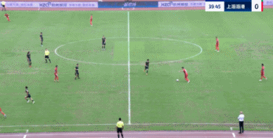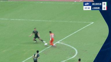 第40分钟,海港后场长传打穿浙江队防守,禁区内冯劲跟进爆射击中横梁↓