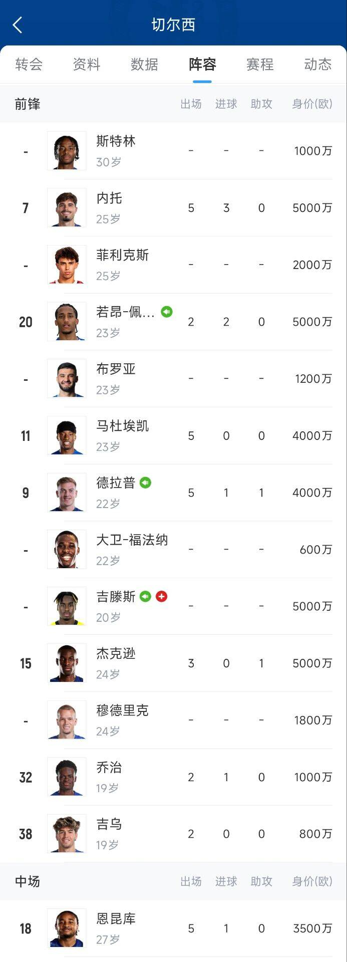 如今切尔西队内人员众多,光是前锋线上就有10多人。马杜埃凯离队之后,其他知名球星包括恩昆库、斯特林、菲利克斯、布罗亚等都处于待售中。此外还有乔治、吉乌等也有外租练级的可能。