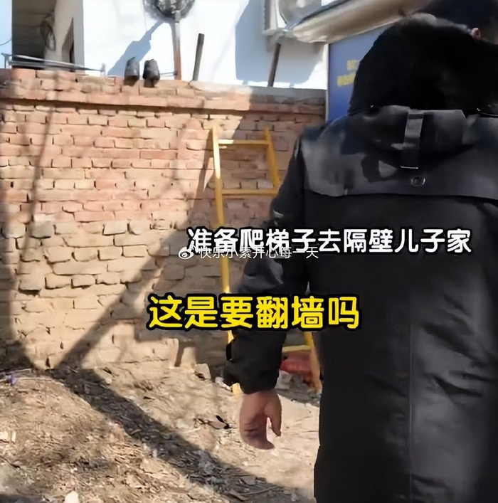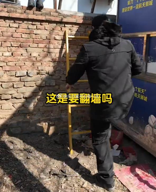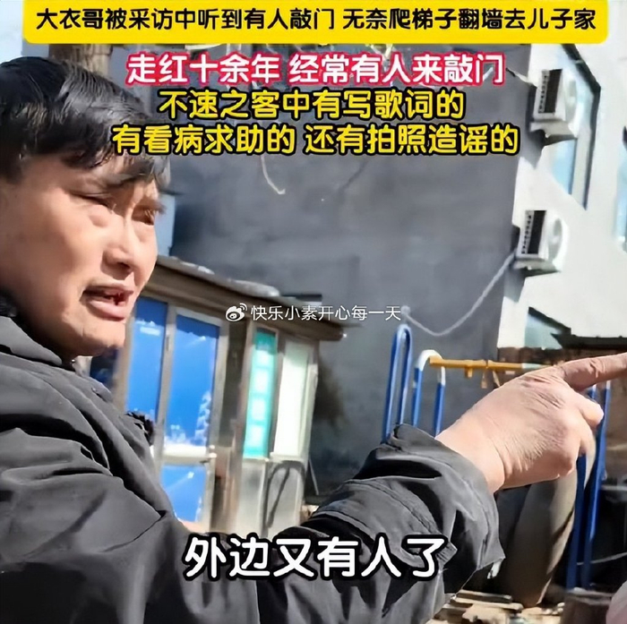 大衣哥在采访期间正准备外出办事,结果就听到有人在敲门。被逼无奈的他只能爬梯子翻墙到儿子家躲避。