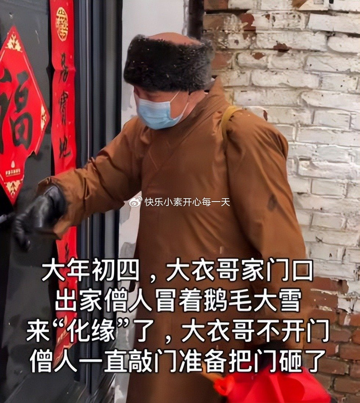 甚至还有和尚借机前往大衣哥家“化缘”要钱,大衣哥不开门的时候,和尚甚至还扬言要把大衣哥家的门给砸了!