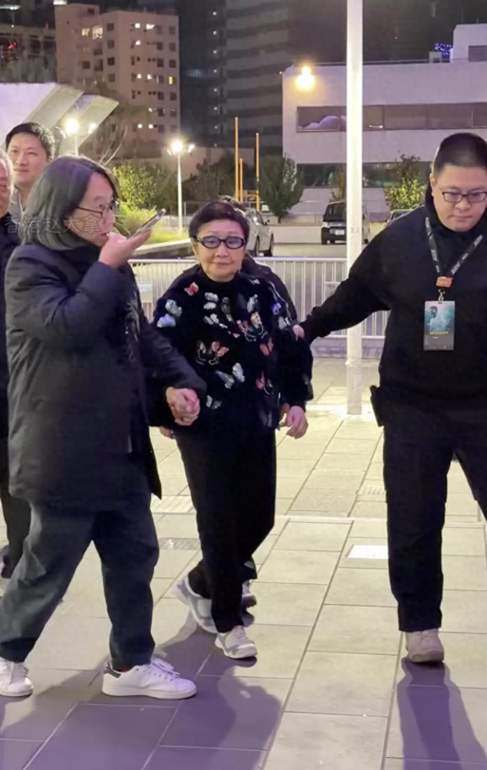 当然年龄摆在眼前,行动不自如是可以理解的。在进入红馆的途中,白雪仙步履蹒跚,被牵手走,但即便如此,她没有坐轮椅,仍然挺直着腰板,一小步一小步地走,保持着应有的仪态。不得不承认白雪仙的状态非常好,到了这个年纪,能够外出到公众场合看演唱会已经非常不简单,而且还可以步行进场就更厉害了。从精神面貌来看,她气色红润,状态丝毫不输陈善之。白雪仙出行一趟不容易,所以除了陈善之以及红馆的工作人员之外,她身后还跟着保姆等,一行五六个人,也称得上是大阵仗了。
