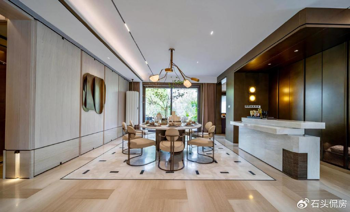 此次开放的叠墅产品,由邱德光设计事务所设计。南向约11米面宽,3.3米层高,拥有 270 度观景视野,业主可拥揽一平方公里的公园大境;南北双庭院与客厅、餐厨形成空间联动,不仅极具观赏性,还实现了功能的延伸;6.6 米挑空阳光 Lounge bar、餐厅、开合式厨房、庭院四大功能相互贯通,构建出一个温馨且充满活力的家庭互动场域。