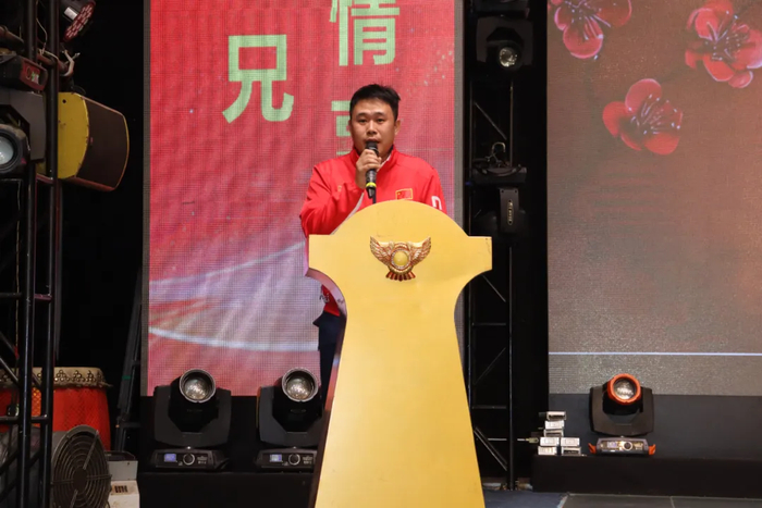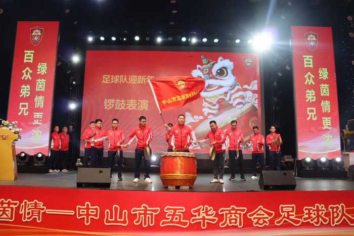当晚七点半,年会在庄严的国歌声中正式开始。中山市五华商会会长黄健平、足球队青年队长李鹏辉先后上台致辞,回顾球队发展历程与年度活动。球队组委会成员吴文基公布了2025年球队收支情况,并逐一感谢了大力支持球队发展的赞助商代表。