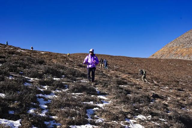 在高原徒步,爬坡是最累的,每一步都像背负千斤重担,每一步都会让你的呼吸更加沉重,而我只要着急就会咳嗽,咳嗽便可能造成哮喘!所以我有一个行之有效的方法让你更快更顺利的抵达山顶,那就是“慢、停、缓”,慢是指把速度放慢,停是指多停下来休息,缓是指走缓坡,不要为了缩短路程而走陡坡,这是我的个人经验,而我也确实因此赶上了比我早30分钟出发的几个男生!内心有点小自豪!