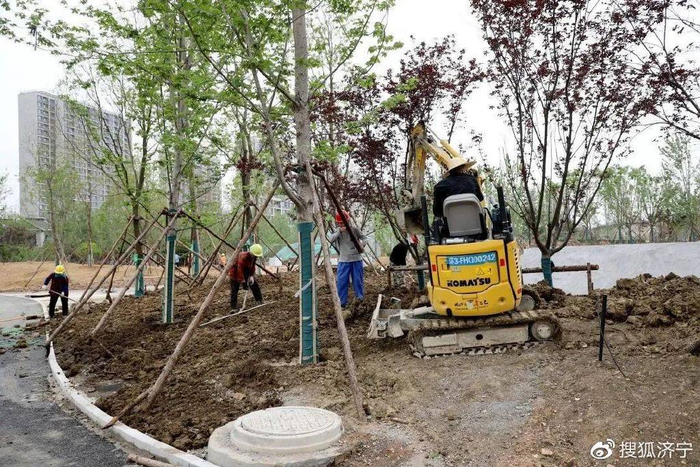 在济宁高新区幸福河东侧,幸福河公园紧张施工中,工人们正在对地面进行铺装和绿化种植,部分树木已经移植完毕,亲水平台也初具规模。建成后不仅能满足周边居民休闲健身的需求,同时还能拓展城市绿色空间,带动蓼河新城人气,提升城市功能品质。