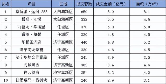 济宁主城区住宅销售业绩TOP10