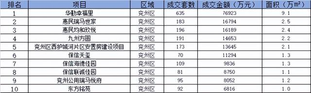 兖州区住宅销售业绩TOP10