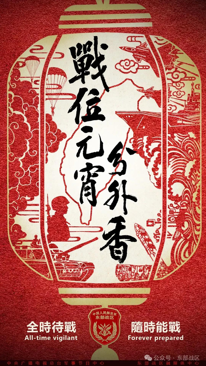 2月12日当天,东部战区同时发布了元宵节花灯海报《战位元宵分外香》,表明东部战区官兵始终坚守战位,时刻保持待战状态,持钢枪、驾雄鹰、驭蛟龙,守护海峡两岸人民喜乐安宁。对此,张军社表示,美舰过航台湾海峡恰恰检验节日期间部队的战备状态,展示出解放军全时待战、随时能战的能力。