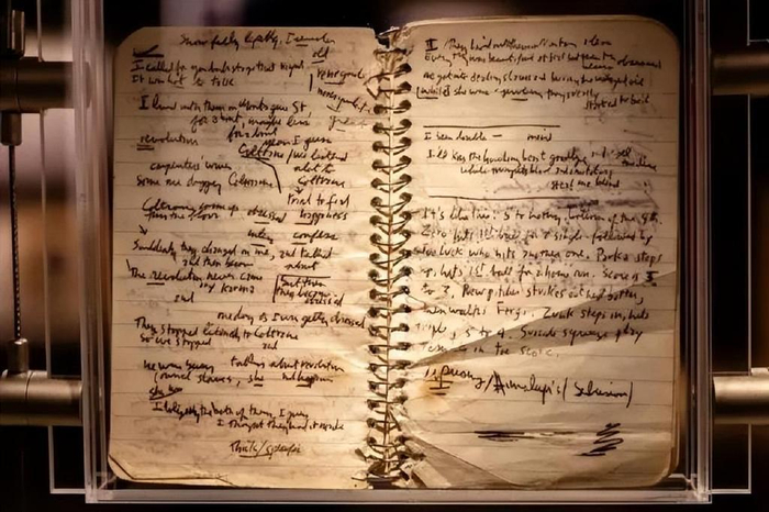 几十年来,研究迪伦的学者们一直在传言说,有一个“红色小笔记本”的存在,上面潦草地写着专辑《Blood on the Tracks》(1975)的歌词,很少有人见过。据信它是几十年前从这位歌手那里被盗的,最终它浮出水面,并被送往纽约的摩根图书馆和博物馆。
