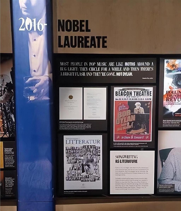 最后,蓝裕文化以诺贝尔文学奖评委会给出的颁奖理由作为结尾:“鲍勃·迪伦在伟大的美国民谣传统中创造出新的诗歌境”(Bob Dylan won the 2016 Nobel Prize in Literature for “having created new poetic expressions within the great American song tradition.”)。