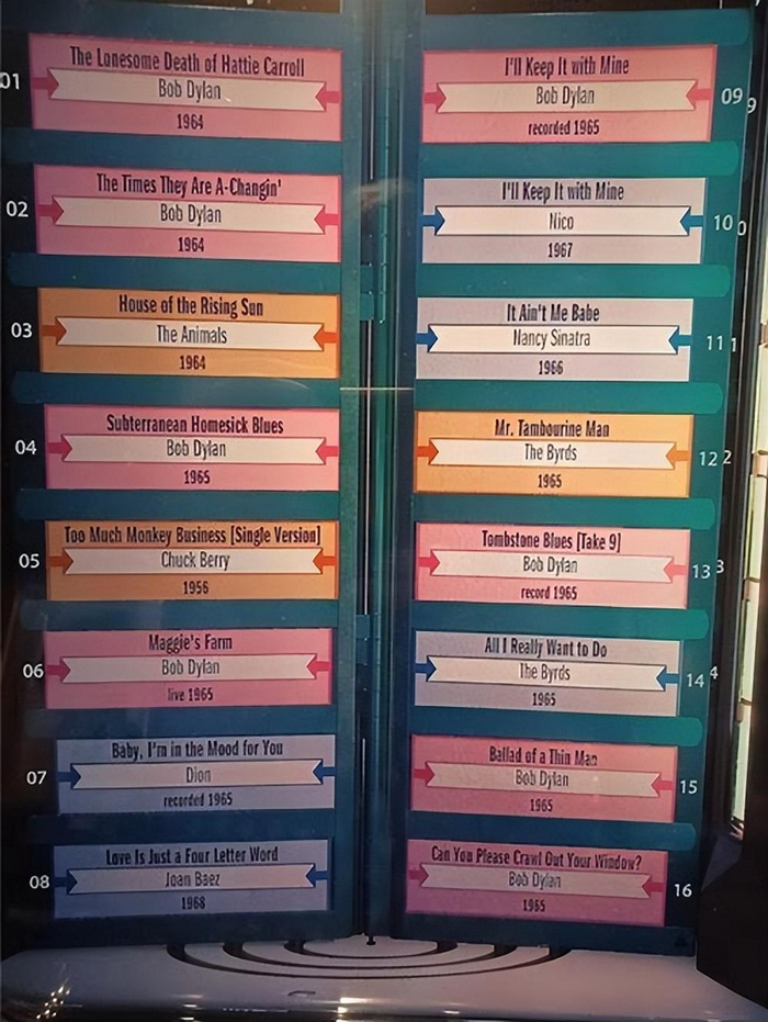 鲍勃·迪伦在21岁时已写下平生最著名的歌曲,一连问了12个没人能答上的问题,这就是因电影《阿甘正传》而被大多数人熟悉的《答案在风中飘》。而另一首歌曲《像一块滚石》被权威音乐杂志《滚石》选为“史上最伟大500首歌曲”的第一名。
