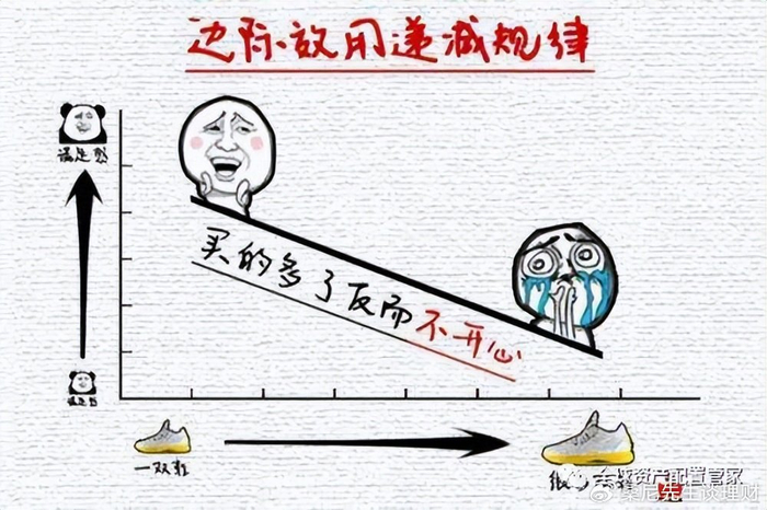 在一定时间内,其他商品的消费数量不变时,随着消费者对某商品消费量的增加,消费者从该商品连续增加的每一消费单位中所得到的效用增量(边际效用)是递减的。以“第二杯半价”为例,这里的边际效应即为在第一杯的基础上,从第二杯饮品中所获得的满足感,将这种效应设定为10分,那么第一杯的满足感是7分,第二杯的满足感则是在第一杯的基础上达到9分,也就是第二杯边际效应为2分,显然第二杯带来的满足感远远不及第一杯,所以同样的价钱来买两杯,消费者会认为“很不值得”。