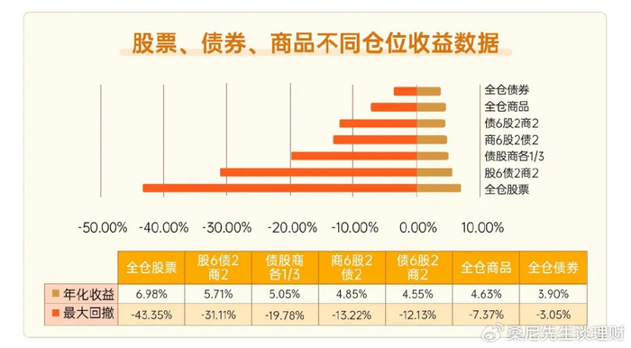 ② 平衡型组合(股50%+债50%):年化收益与波动率相对适中,适合风险偏好适中、追求长期财富增长的投资者;