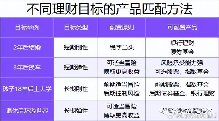 一句话口诀:什么时间用钱,就选什么风险的投资。