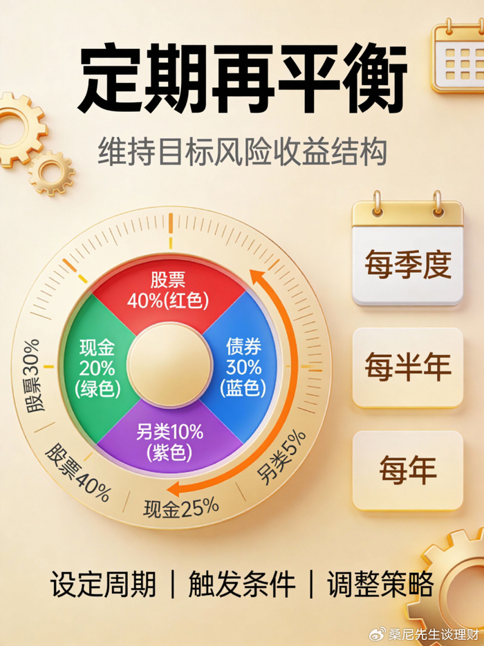 3. 动手调整:如果股票占比过高,就卖掉一部分,补入债券或现金,让比例回归目标。这个过程也叫“再平衡”,它能强迫你“高点卖出,低点补入”,是长期制胜的关键。