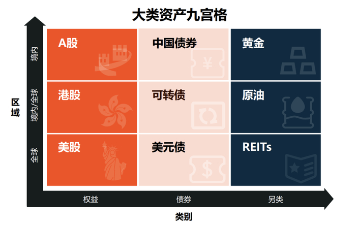 1. 跨资产类别:这是基础,把你的钱分在股(追求增长)、债(求稳定)、现金(保流动) 这几大篮子里。