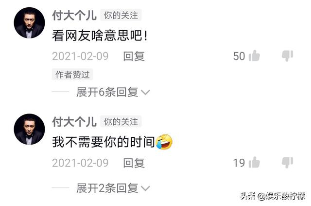 而付滃则调侃称:我不同意。随即付滃又在视频下留言:我不需要你的时间,看网友们啥意思吧!