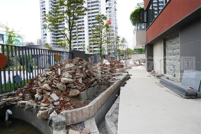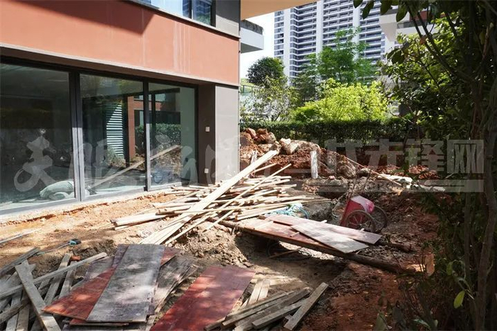 记者从贵阳花语墅物业服务中心了解到,贵阳花语墅麓林组团于2024年6月30日正式交付,物业工作人员于2024年6月27日临时接管现场,并通过多位业主了解到,在交房前已有业主实施侵占行为。工作人员在进行踏勘工作时发现,麓林组团1栋某号房在交付手续未完善时已开始实施侵占公共绿化的装修,存在扩建花园及改变规划行为,扩建公共绿地预计30㎡-80㎡,疑似搭建假山、鱼池、硬化绿地占用。