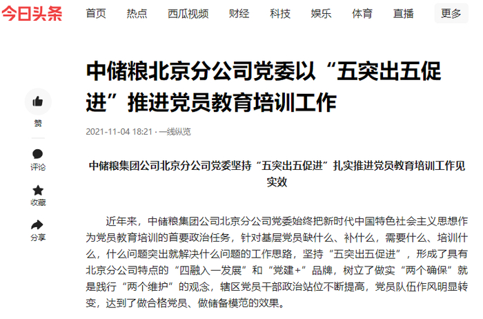 近年来,中储粮集团公司北京分公司党委始终把新时代中国特色社会主义思想作为党员教育培训的首要政治任务,针对基层党员缺什么、补什么,需要什么、培训什么,什么问题突出就解决什么问题的工作思路,坚持“五突出五促进”,形成了具有北京分公司特点的“四融入一发展”和“党建+”品牌,树立了做实“两个确保”就是践行“两个维护”的观念,辖区党员干部政治站位不断提高,党员队伍作风明显转变,达到了做合格党员、做储备模范的效果。