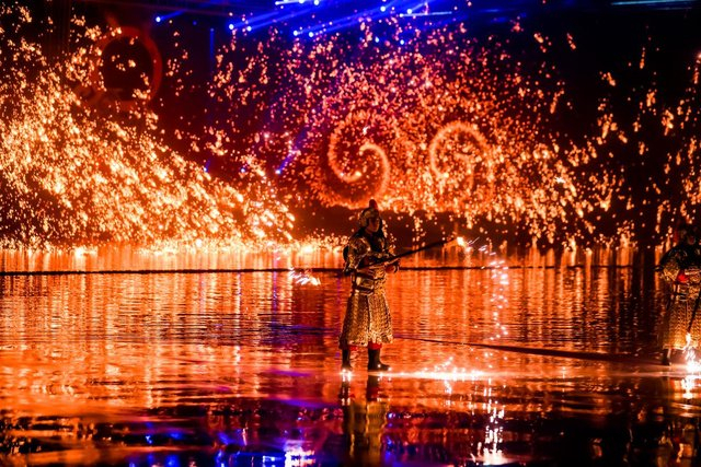 除此之外,银基冰雪世界的室内飘雪与梦幻极光秀,为游客营造了冰湖上的童话王国,上新的《企鹅飞》游览场景让游客有机会多视角观察到企鹅的各种行为状态;银基乐海神话世界的“天火”实景演出融打铁花与光影艺术于一体,带来强烈的视觉冲击力,让现场游客感受到传统文化与现代科技碰撞产生的独特魅力。