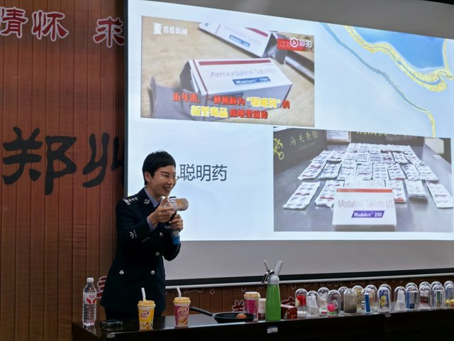 这一互动设计瞬间点燃了全场同学的求知欲。民警首先从当前毒品问题的严峻形势入手,结合青少年的心理特点和认知水平,深入浅出地讲解了各类毒品,特别是那些伪装成“跳跳糖”、“奶茶”、“邮票”等新型毒品、善于“变身”的合成毒品、新精神活性物质的危害,将枯燥理论转化为一个个鲜活的案例与触目惊心的真相,让同学们在惊叹中夯实防毒心理防线。