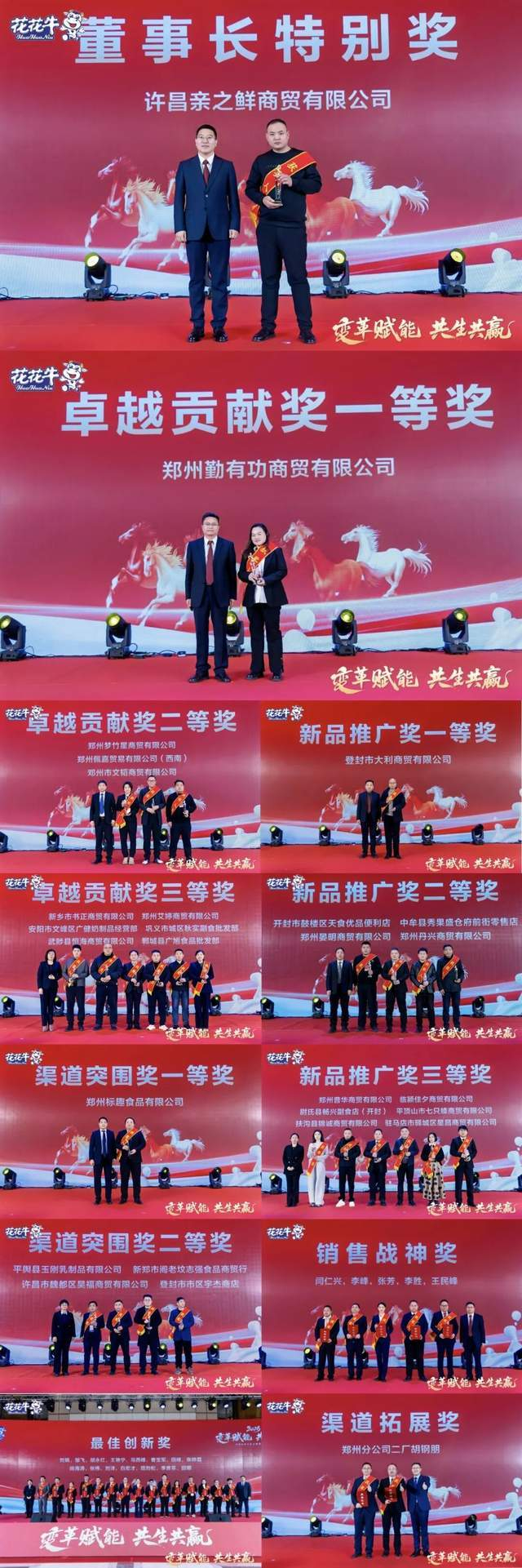 会议还对2025年涌现出的优秀经销商、配送商及先进销售代表约50人进行了表彰。他们以无畏的勇气和卓越的贡献推动花花牛一路向前,这份荣誉,他们当之无愧!
