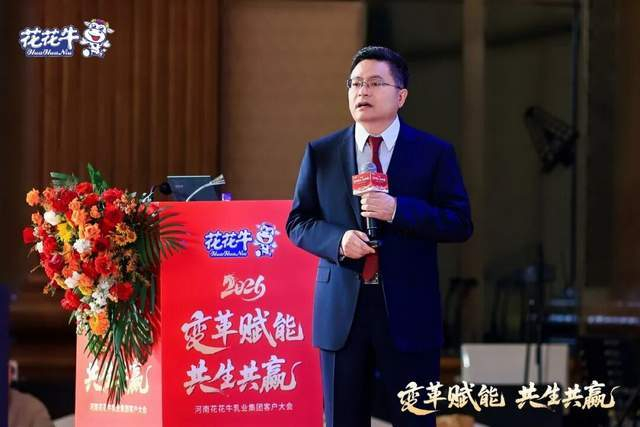 河南农投集团党委委员、副总经理,河南花花牛乳业集团党委书记、董事长张峰在大会上发表讲话。他表示,自履新以来,自己深切体会社会各界及合作伙伴对“花花牛”品牌的深厚情感与殷切期望,对社会各界和合作伙伴长期以来的支持表示衷心感谢,强调经销商是集团休戚与共的战略伙伴和宝贵财富,指出2025年集团在挑战中前行,获得了河南省政府及河南农投集团的坚定支持。面向“十五五”规划开局之年,张峰部署了三大关键举措:一是以产品与技术驱动品牌升级,聚焦关键技术创新与高端产品打造,深化产学研协同,优化产品矩阵,增强竞争力;二是以数智化与渠道拓展开拓增量市场,推动全链条数字化转型,实施“多点开花”策略,构建多元共赢的渠道生态体系;三是以团队与服务深化厂商协同,围绕“客户成功”优化组织机制,强化市场支持与合作伙伴赋能。张峰强调,集团将坚持长期主义与价值营销,维护市场秩序与伙伴利益,优化价格体系与渠道政策,与经销商携手攻坚,共享胜利成果。他号召全体花花牛人与经销商伙伴在战略引领下,勇于变革、精诚合作,携手打赢市场攻坚战,为河南奶业振兴与农业强省建设贡献力量。