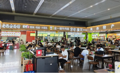 出发层二楼美食广场是目前西安北站美食种类最多的区域,天南地北的旅客都可以在此品尝到适合自己的美食。