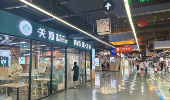 南广场负一层地下停车场美食街主要以特色小吃和便利店、饮品店为主。