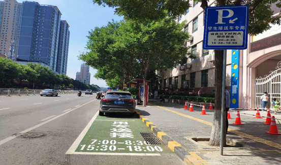 目前,已在15个学校周边增设200余个路内免费专用临时停车泊位,引导接送学生车辆有序单排停放、限时停放。