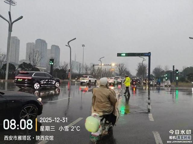 12月31日清晨,西安迎来雨夹雪恶劣天气,路面湿滑易结冰,给早高峰出行带来极大挑战。为严防雨雪天气引发道路交通事故,保障群众出行安全,交管莲湖大队迅速启动恶劣天气应急预案,全体执勤民警提前到岗,奔赴辖区各主干道、学校、商圈等易拥堵路段,开展交通疏导、隐患排查工作。
